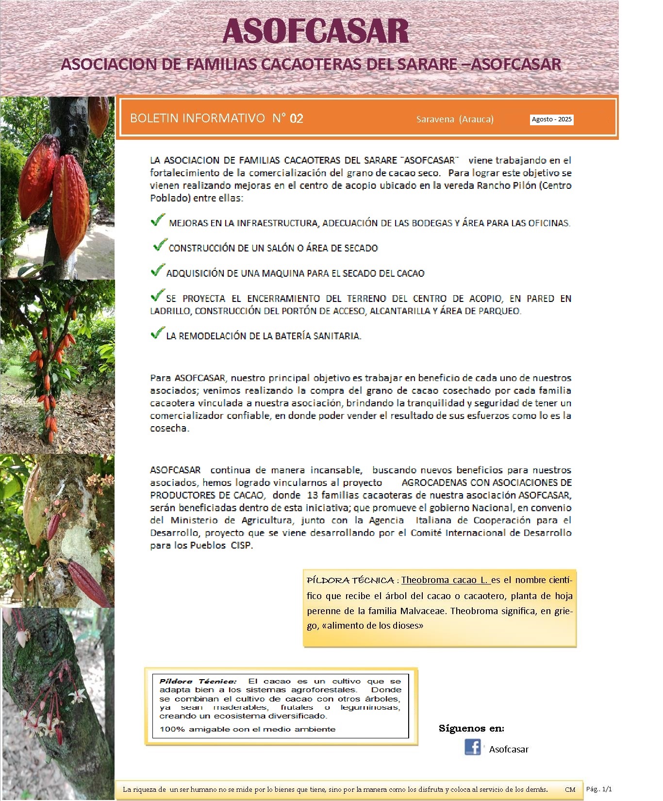 • "Cacao para la paz y la vida"